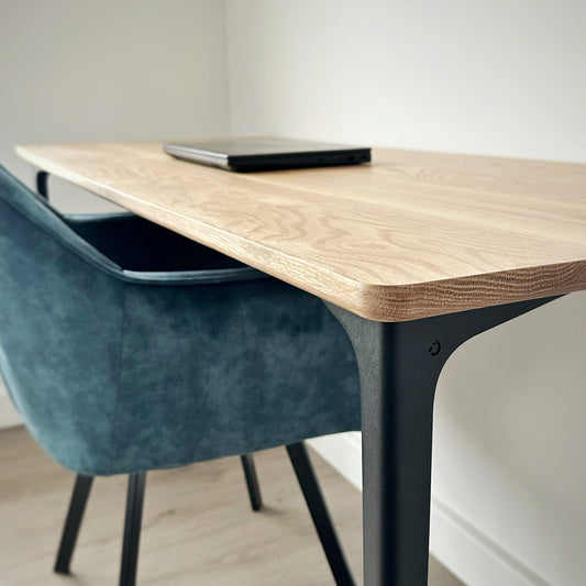 OUR DESKS // SOILD OAK 22-32mm thick, rounded up chamfer, 18 deg corners, soaked in Rubio Monocoat wax oil, sealed in a clear 2k varnish. No yearly maintenance, and made to last