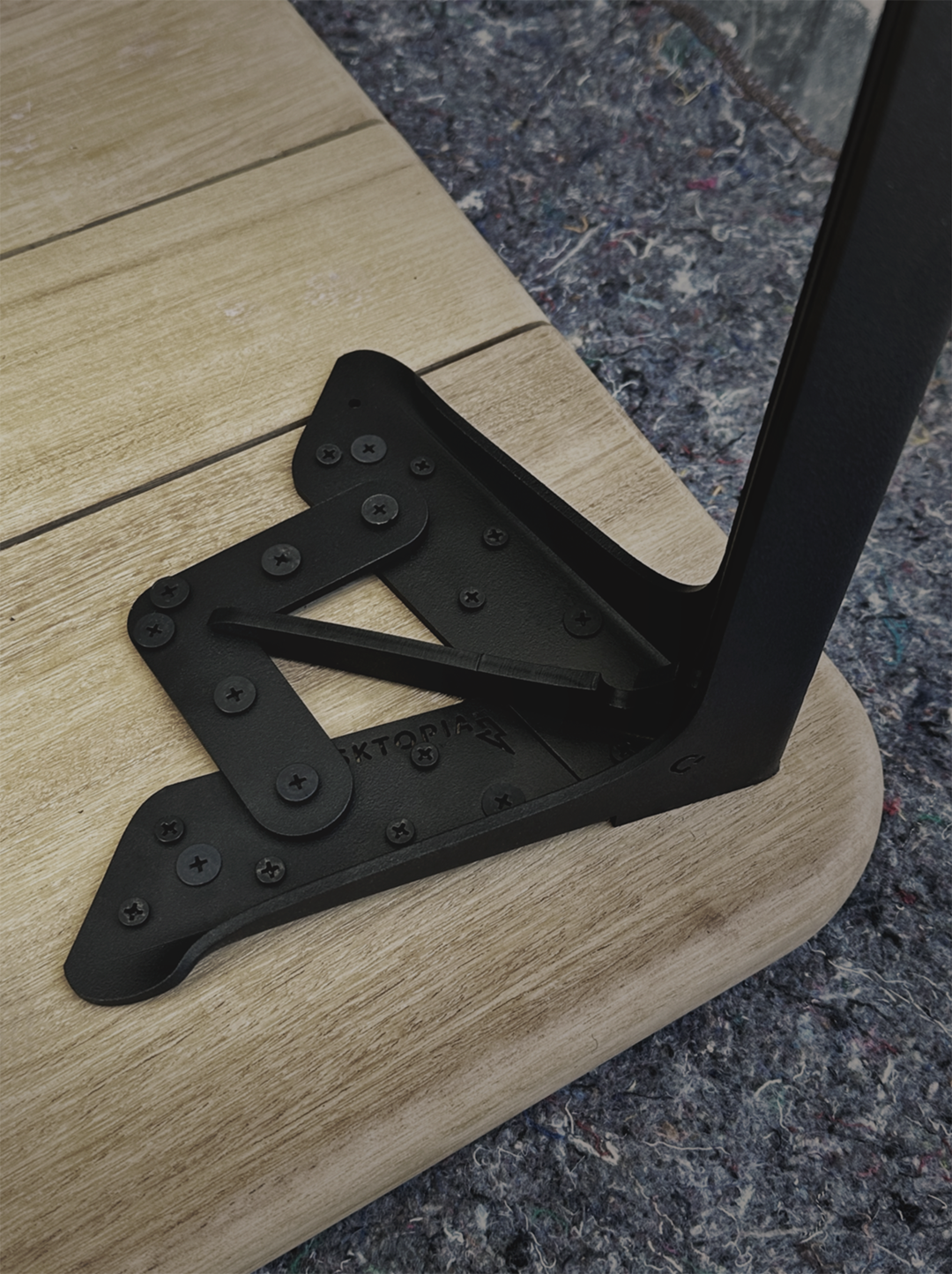 - WITH LEG STAMP // A brilliantly precise CNCed V shape into the solid wood, showing exactly where you must place your legs