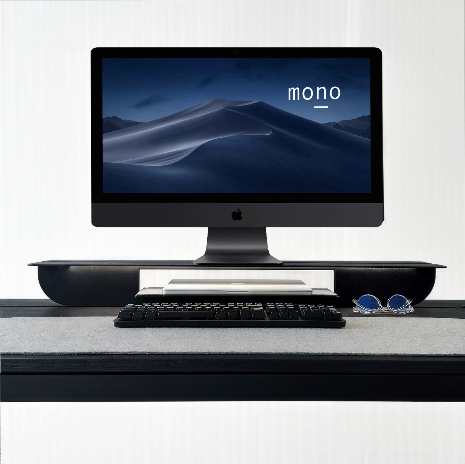 DESCRIPTION // best to just look at the images ; ) BUT // Monitor stand or Desk Shelf allows you to effectively structure and organize your desk space. It is wide enough (1 meter x 210mm(d) x 110mm(t) to hold two screens or one ultrawide monitor. Thanks to its elevated design, and the sneaky shelf, it frees up space underneath your devices providing extra storage for important accessories you want to keep close such as a keyboard, headphones, or a notebook. AND a bonus with holding smart phones and tablets, with concealing call the nasty charging cables.