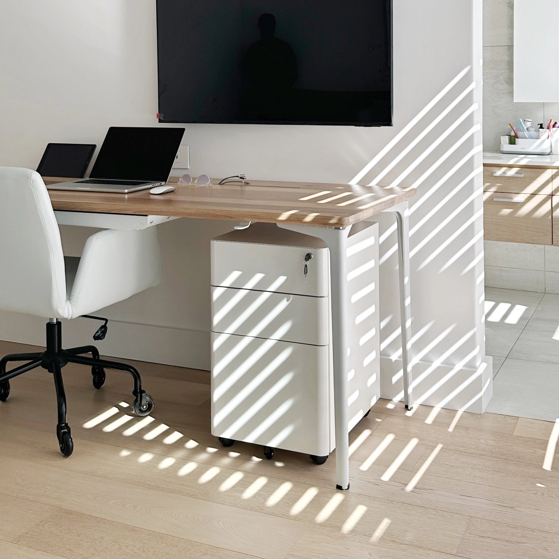 WHAT YOU GET // One super set of steel drawers, sturdy, efficient mobile filing cabinet (46 x 30 x 59.2 cm). Its compact footprint conceals generous storage capacity, accommodating A4, letter, and legal-size documents across three drawers.