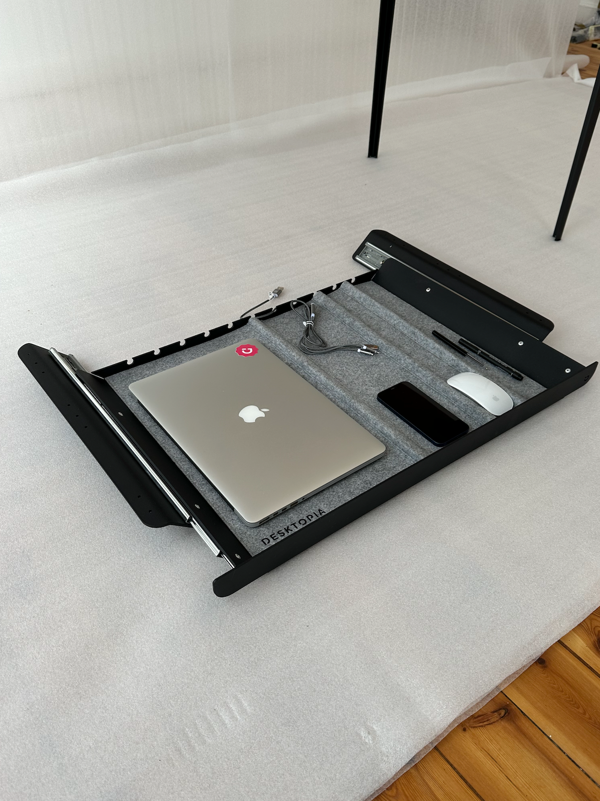 SUPPLIED // ONE UNIT (NO ASSEMBLY) = one main drawer tray 3mm, two 4mm draw guides on runners, and fixing screws PLUS super soft FELT pad.